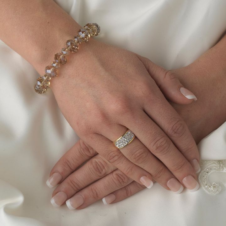 This stretch bracelet features sparkling light brown crystals that make the piece a beautiful choice for your modern, classic, or vintage inspired wedding. The bracelet measures 2 3/4" while at rest.