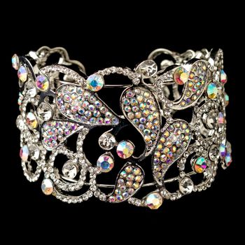 Adore your wrist with this chic bracelet featuring a unique design encrusted with ab and clear rhinestones in a rhodium setting. This glamorous cuff/bangle bracelet is perfect for weddings, proms, homecomings, or any elegant affairs.