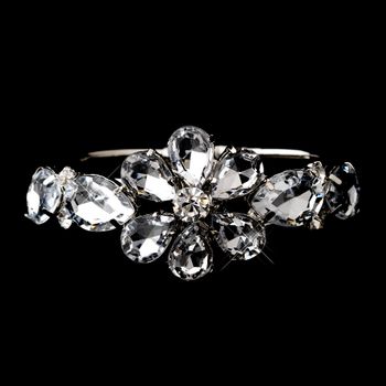 A beautiful bracelet featuring Austrian crystals in pear and round cuts. These sparkling crystals are arranged in the shape of a blooming flower all laid on a silver plated setting. This accessory is perfect for any elegant occasion and its timeless style makes it an ideal piece for anyone.