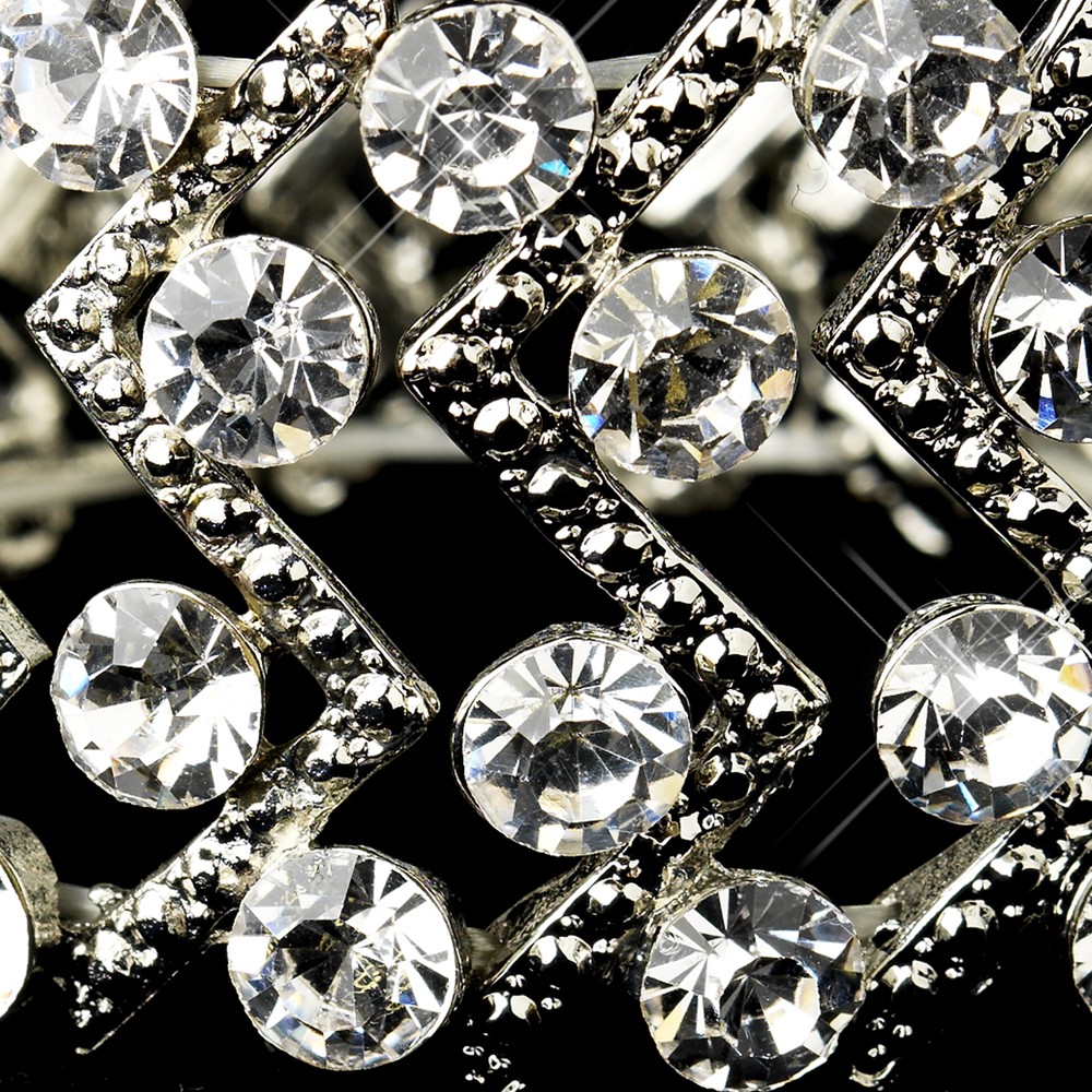 Silver Clear Crystal Stretch Cuff Bridal Bracelet 8691