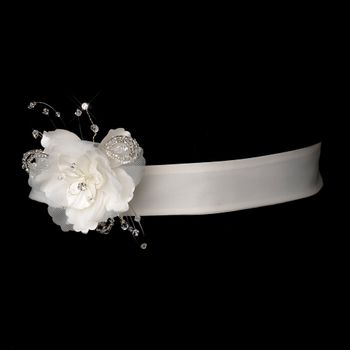 Belt with Crystals & Beads Fabric Flower Comb 8420