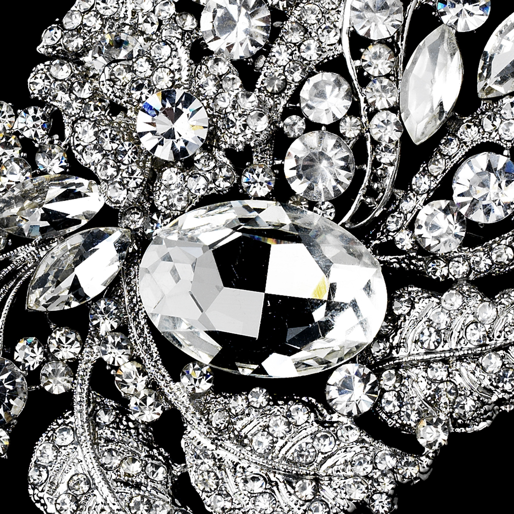 This lovely silver brooch features dozens of sparkling crystals in a swirling floral design. This perfect accessory can even be transformed into a lovely hair piece with the simple addition of a slide-on comb.