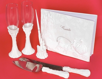Majestic White Cinderella Castle Toasting Flutes, Cake Server, Guestbook & Pen Set