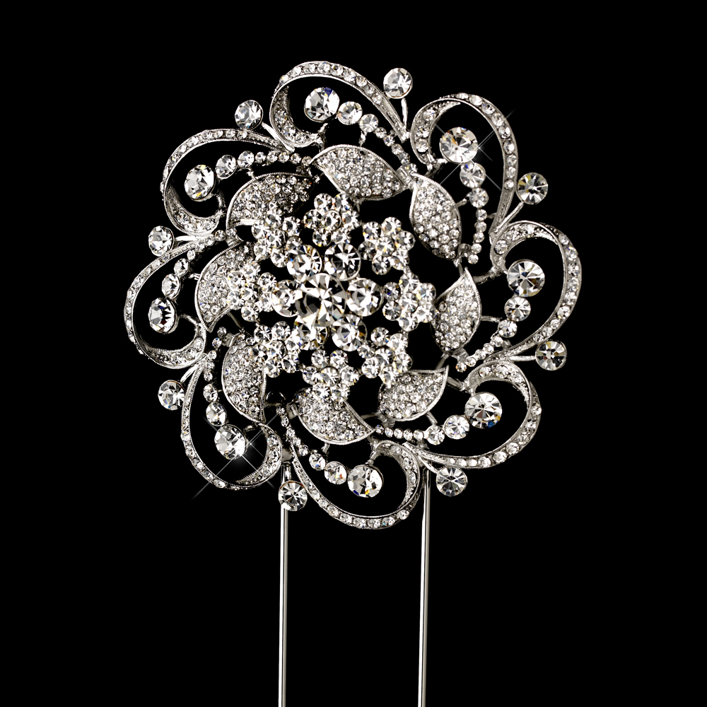 Take a look at this piece of cake jewelry like you've never seen it before! A floral ornament design is featured in luminous Sterling silver plating and is completely encrusted with dozens of sparkling rhinestone crystals as they lie into leaves, sprigs and a whirling designs.