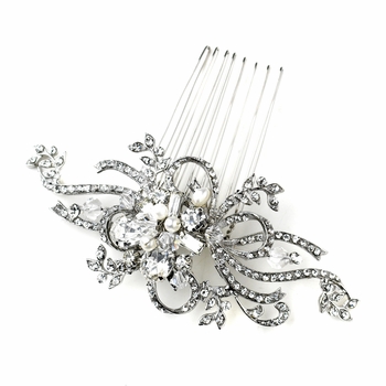 Antique Silver Freshwater Pearl & Crystal Swirl Comb 760