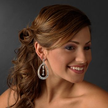 Gorgeous teardrop earrings featuring a delicately embellished silver setting encrusted with rhinestones and colorful aurora borealis crystals. These lovely earrings are a beautiful accessory for any elegant affair.