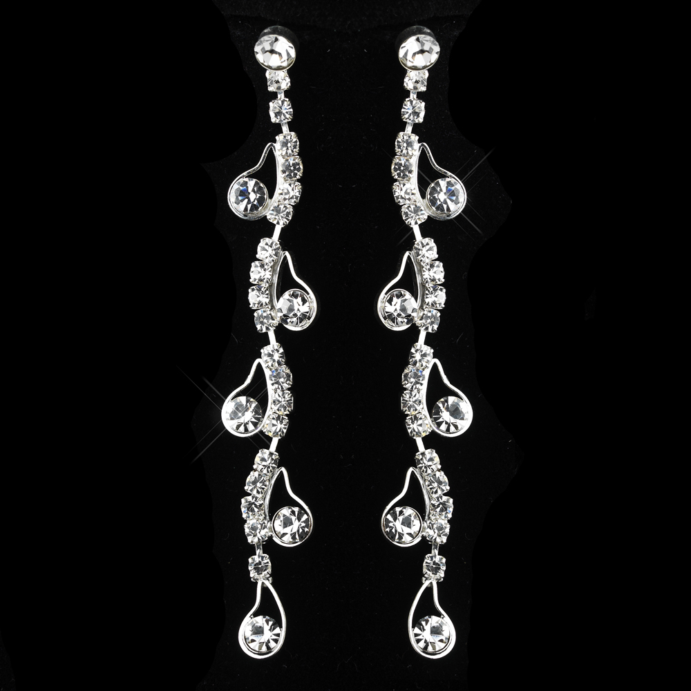 These dazzling drop silver earings embellished with your choice of clear rhinestones or white pearls and clear cut rhinestones. Formed in an intricate rhythmic design these earings are perfect for any white bridal ensemble in need of a touch of sparkle!
