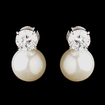 Silver Clear CZ Crystal & Diamond White Pearl Bridal Earrings **Discontinued***