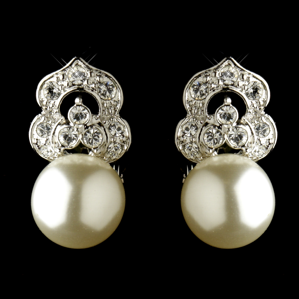 Antique Rhodium Silver Clear CZ & Diamond White Pearl Earrings 7860 - 2 left