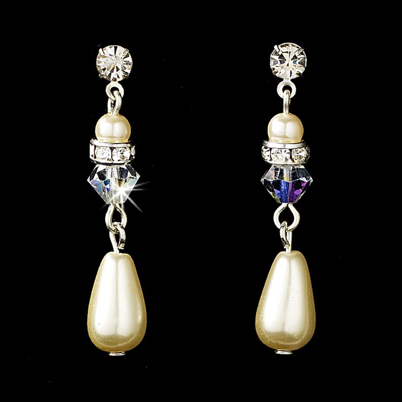Simple and charming, these silver plated earrings feature a small drop of rhinestones, clear Swarovski crystals and faux ivory pearls. A perfect accessory for your modern or vintage wedding!