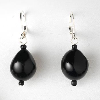 Stunning, this pair of black accented earrings features silver plating and faux pearls. The earrings coordinate beautifully with your ivory wedding dress, and are the perfect accessory to your classic or modern wedding, measuring 3/4".This earring measures 3/4" in length.