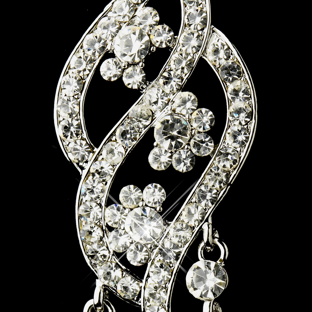Silver Clear Rhinestone Dangle Bridal Earrings 8657