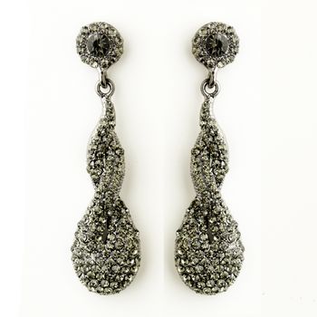 These extraordinary hematite plated smoked crystal bridal dangle earrings are ideal for weddings, proms, homecomings or any other special occasion in need of some extra sparkle! They feature a fabulous hematite plated swirl design and are gorgeously adorned with glamorous black diamond crystals!