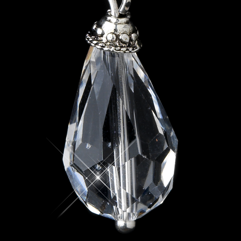 Silver Clear Crystal Tear Drop Dangle Bridal Earrings 8737
