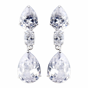 This gorgeous drop earrings set produce the perfect amount of glamour for any wedding. Three different shapes and sizes cubic zirconia crystals in tear drop cuts on silver setting making this set truly dazzling and adds the right amount of sparkle to any gown.