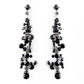 Sparkling black Austrian Crystals give these antique black silver plated earrings an enchanting quality, making the set a memorable and lovely part of your special day. The perfect accessory to your modern or vintage-inspired wedding. The earrings fall to a romantic and lovely 3 1/2". This earring measures 3 1/2" in length and 3/4" in width.