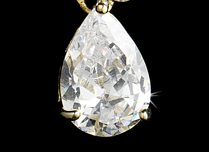 These gold earrings add the right amount of sparkle to your special day. They feature a bundle of three round-cut cubic zirconia crystals with a pear-cut cubic zirconia crystal drop. They are the perfect choice for weddings, proms or any formal event.