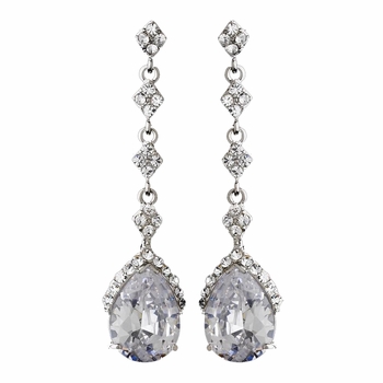 A stunning clear teardrop dangles beautifully from these silver plated earrings. Clear rhinestone accents sparkle throughout the rest of the pair, making these earrings the perfect accessory to your modern, classic, or vintage-inspired wedding. The earrings fall to a lovely 2 1/2".
