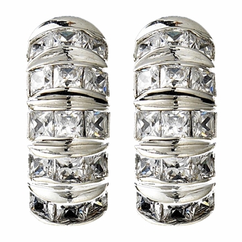 Sparkling with radiance, these half hoop earrings feature bands of petite princess-cut cubic zirconia crystals and brilliant silver plating, which make these earrings really glisten! These are a charming addition to your modern, classic, or vintage-inspired wedding and can even be worn to prom or a formal event.