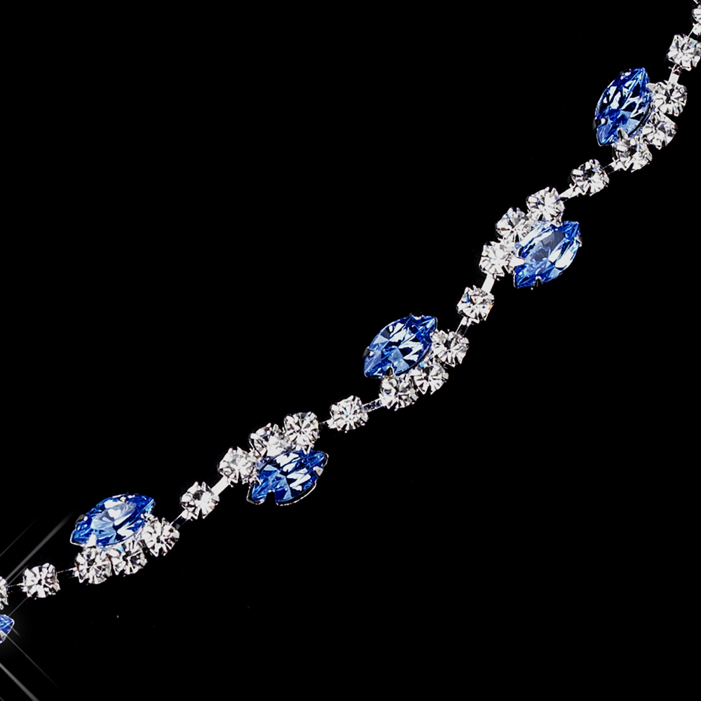 Silver Sapphire & Clear Marquise Rhinestone Bracelet 9344