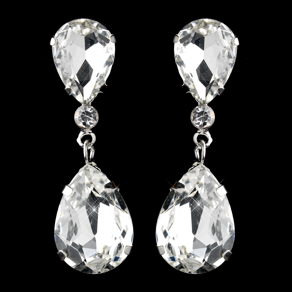 Silver Clear Teardrop Clipped Dangle Earrings 2233