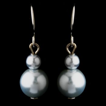 Silver Light Blue Glass Pearl Drop Earrings 8601