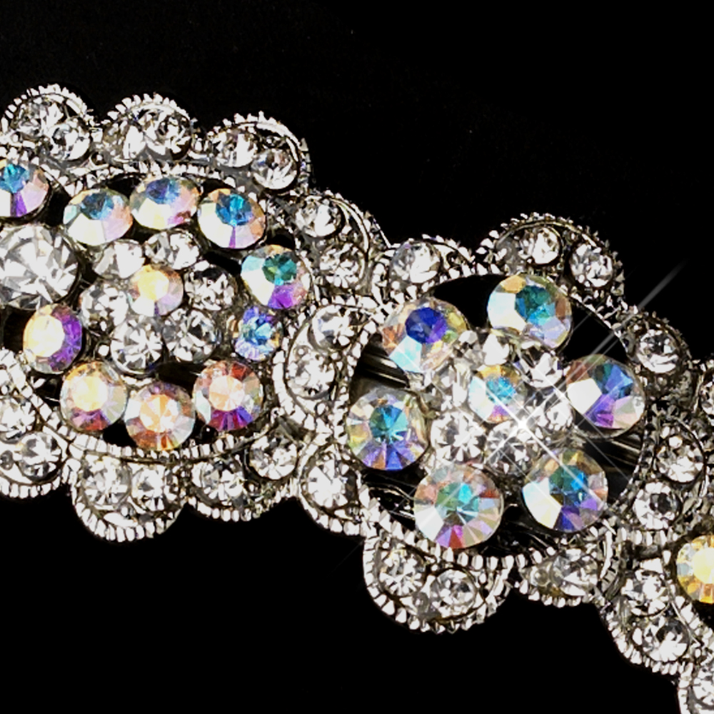 Antique Silver Rhodium AB & Clear Rhinestone Floral Hair Barrette 6500