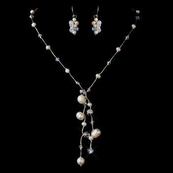 Home > Silver Freshwater Pearl & Swarovski Crystal Bead Thai Silk Necklace 2010 & Earrings 2148 Jewelry Set