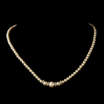 Home > Gold Ivory Czech Glass Pearl & Rhinestone Rondelle Necklace 8664