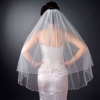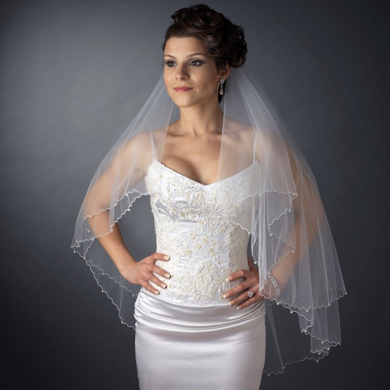 Double Layer Fingertip Length Scalloped Corded Glass Pearl Edge Veil FC V 0440 F
