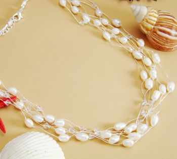 Freshwater Pearl & Crystal Multi Strand Necklace N 8250