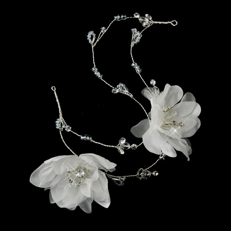 This two strand white flower rhinestone bridal headpiece features two white flowers with sparkling crystal accents set on two wire strands adorned with crystal beads and rhinestones. This piece is perfect for any classic, modern or vintage inspired bride.
