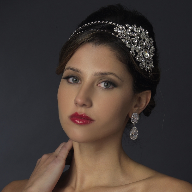 Home > Antique Silver Clear Side Accented Rhinestone Bridal Headband 930