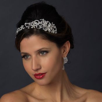 This dazzling antique silver headpiece is vintage inspired and offers true beauty. Can be added to any bridal updo and offers true sparkle with clear cut rhinestones encrusted in a floral decorative pattern.