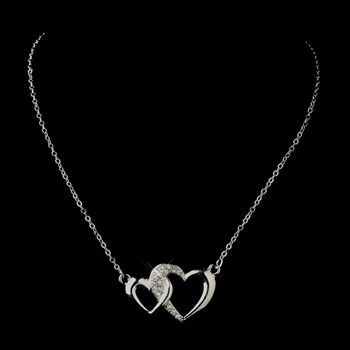 A gorgeous silver necklace with two hearts linked together. Dazzling silver hearts with little radiant crystal clear rhinestones on one side of the hearts that accentuates the beauty of the necklace even more. Perfect look for any occasion. Weddings, proms, homecoming, or maybe for a romantic date or a casual night out. A touch of elegance and chic.