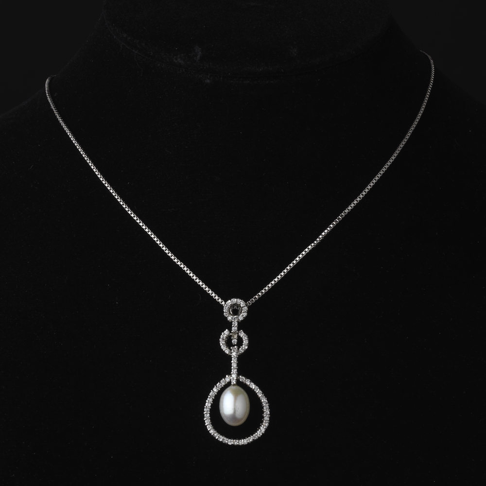 Lovely silver necklace featuring a stunning crystal and ivory faux pearl pendant. This gorgeous necklace is the perfect accessory for your wedding day, if you're still in search of that perfect 'something new' look no further - this is it!