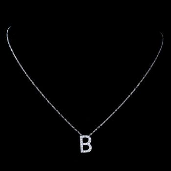 "B" Sterling Silver CZ Crystal Initial Necklace