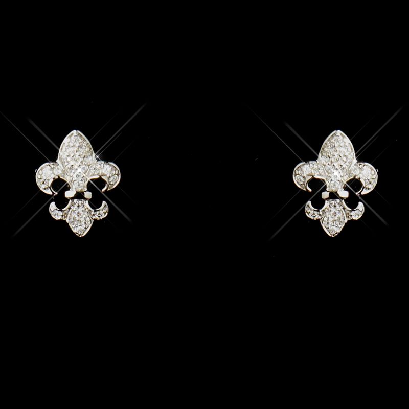 This set of shimmering silver clear cubic zirconium fleur-de-lis stud earrings make a lovely accessory for weddings, proms, homecomings or any special occasion. They feature a wonderful silver plated fleur-de-lis design gorgeously adorned with dozens of petite CZ gemstones. These would even look great with a casual outfit.