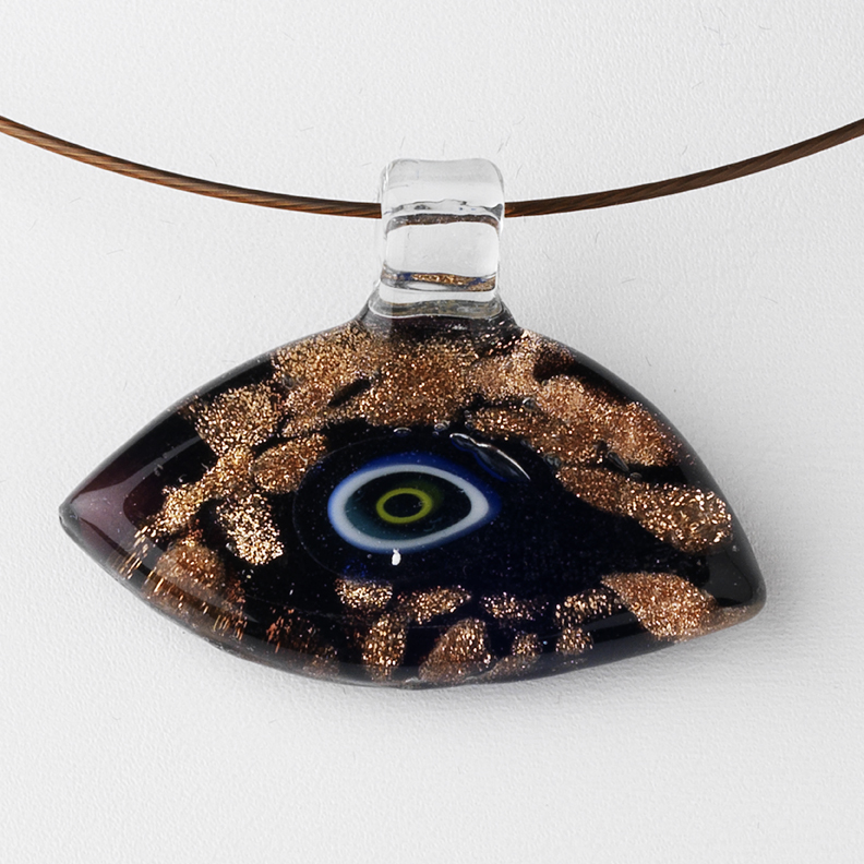 Enchanting and charismatic, this necklace features a stunning black and bronze glass Evil Eye pendant. An ideal accessory for your wedding, prom or homecoming, the necklace measures 5” in diameter with a 1” long pendant.