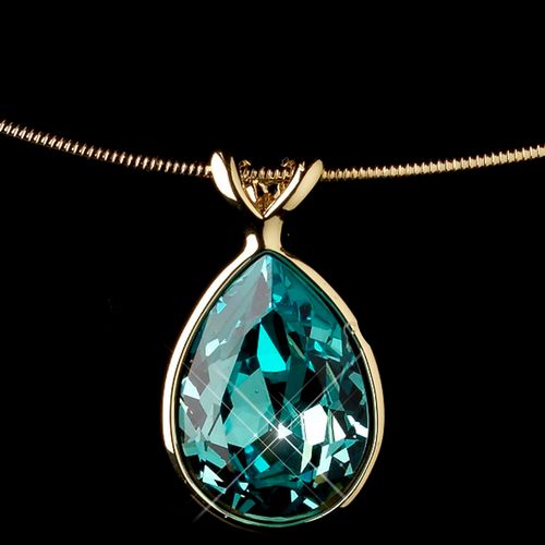 Gold Aqua Swarovski Crystal On Wire Teardrop Pendant Necklace 9604