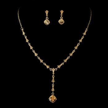 Home > Dreamy Gold Topaz Crystal Necklace & Earring Set 994