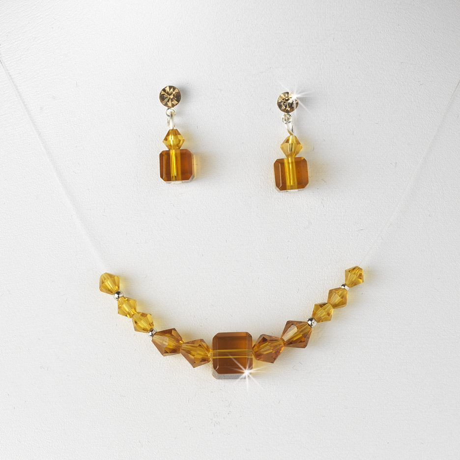 Tan Crystal Illusion Necklace & Earring Set NE 233
