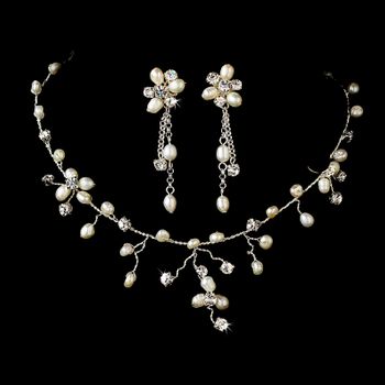 This necklace and earring jewelry set features gorgeous Freshwater Pearls with accents of Rhinestones that has a sparkle that glistens just like real diamonds. Perfect set to wear to a wedding, prom, pageant, or special occasions.