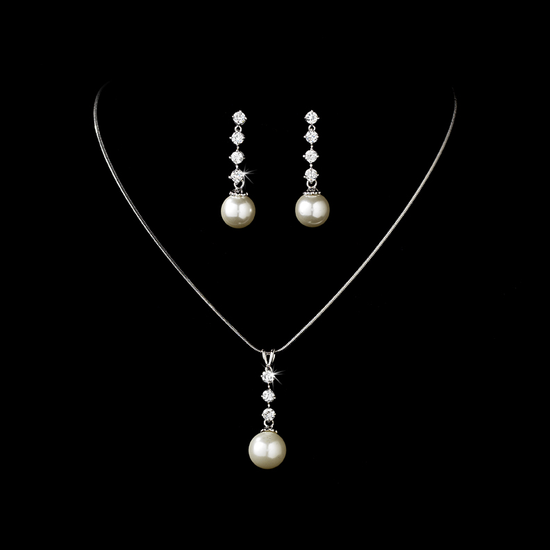 Pearl and Cubic Zirconia Drop Jewelry Set NE-3626