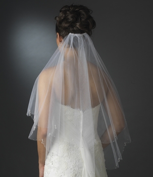 Double Layer Elbow Length Veil with Dangling Crystals and Accented Scolloping Edge V 115 E