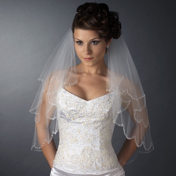 Double Layer Elbow Length Scalloped Edge with Pearls & Bugle Beads Veil 136 E