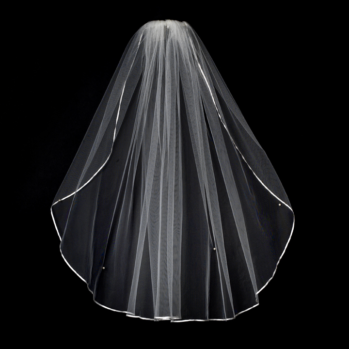 VS 1E Ivory- 1/8" Satin Ribbon Edge Veil, 1 Layer Elbow Length Veil (30")