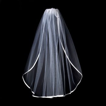 Item Style Number: VS 1E Diamond White - 3/8" Satin Ribbon Edge Veil, 1 Layer Elbow Length Veil (30")