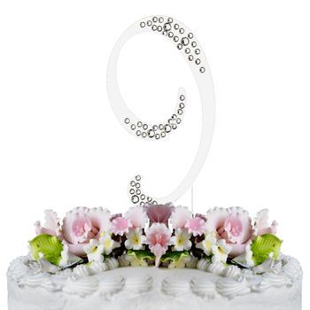 9th Birthday or Anniversary Crystal Accented Cake Top " Sparkle " (Silver or Gold)