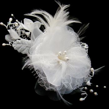 White Bridal Feather Fascinator (1 Piece in Stock Lt Ivory - Special Order Any Color)